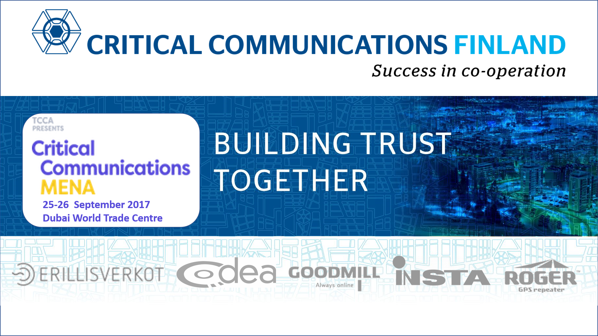 Critical Communications Finland pavilion in Critical Communications MENA 2017 (CCMENA2017) presents Finnish authority solution providers and how building trust together drives security, safety and efficiency alongside with continuous innovation.